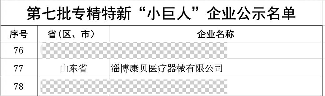 近日,山东省工信厅正式公布了第七批专精特新“小巨人”企业名单。淄博康贝医疗器械有限公司凭借在血液净化吸附材料领域强大的研发能力、卓越的市场表现,成功通过严格评审,光荣入选!