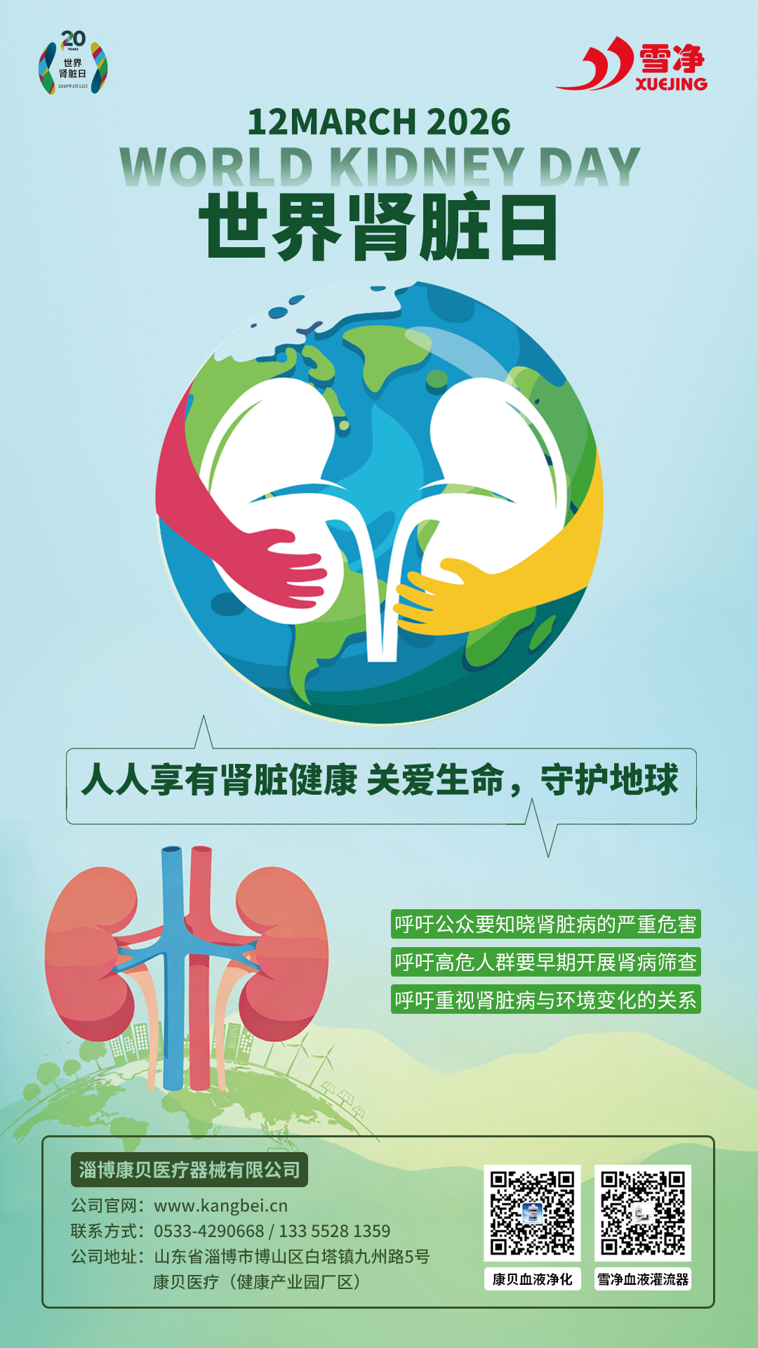 “人人享有肾脏健康:关爱生命,守护地球”——今年的主题将肾脏健康与地球的健康联系起来,希望传递这样的理念:保护肾脏,不仅是在关心自己的身体,也是在关注我们所处的环境。
